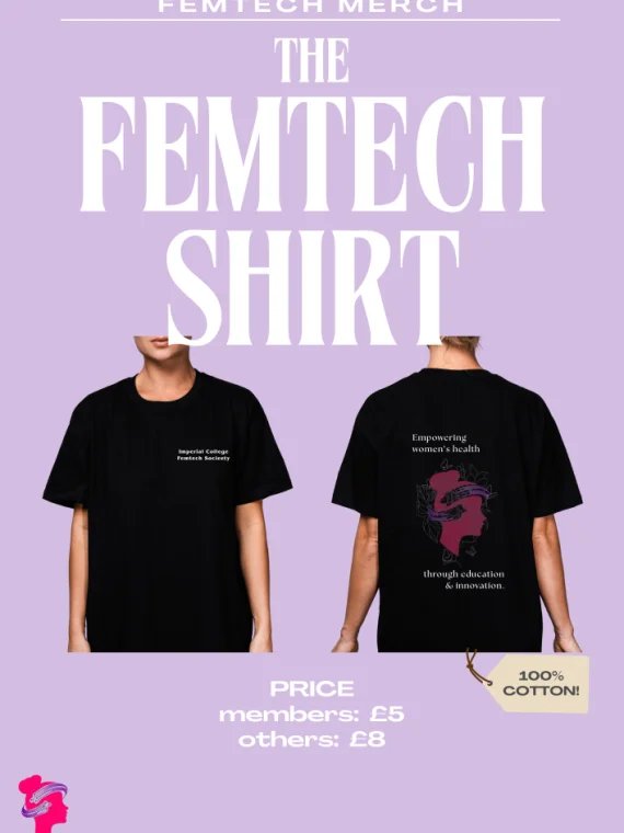 100% cotton student-designed Femtech T-shirt. Only £8 for non-members! Make sure to get your free membership for a discounted price!