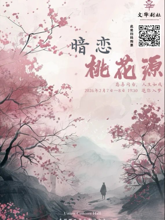 Our 2026 annual play presented by WenHua Chinese Drama Society. On 7 and 8 of February. Location: Union Concert Hall, Imperial College Union, South Kensington, London, SW7 2BB. Entry start at 7pm. Secret Love in Peach Blossom Land starts with two drama troupes arranged to have a rehearsal at the same time by mistake; one of the workshops is playing the early-modern tragedy Secret Love, and the other one is playing the period comedy The Peach Blossom Spring based on a classical poem. The problem is, both these plays have to perform in two days. Since they have only one stage for their rehearsals, issues and conflicts follow. Secret Love for the Peach Blossom Spring creates a unique experience of stage play by mixing up the costume and modern, sorrow and delight.